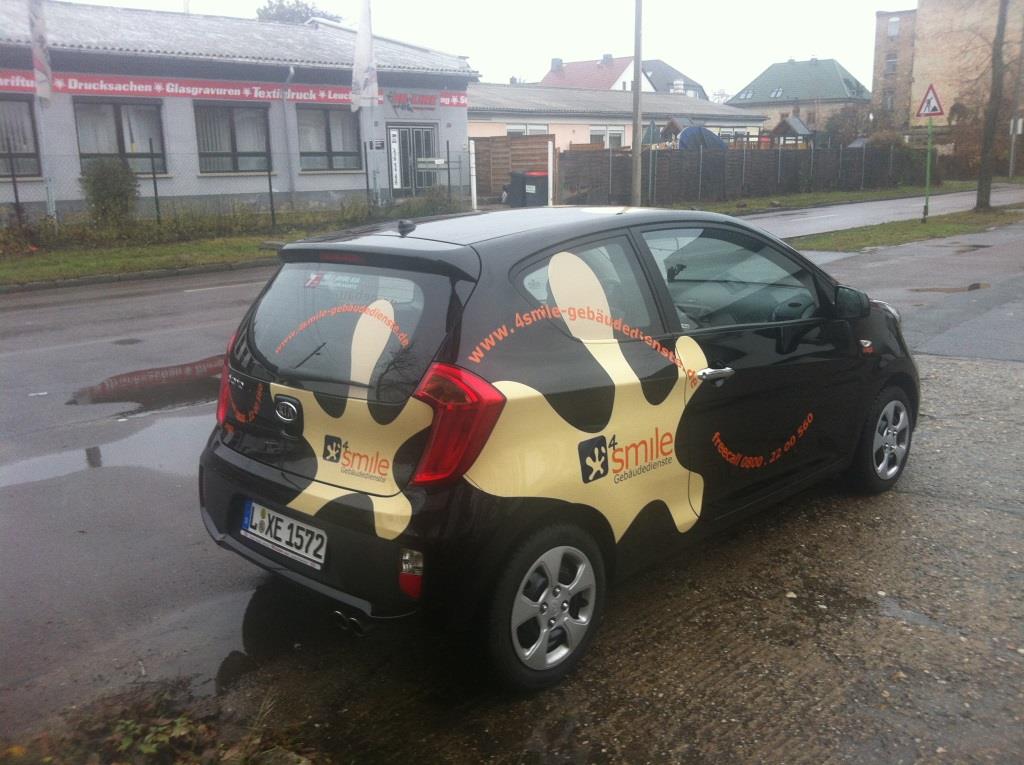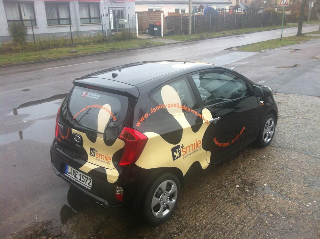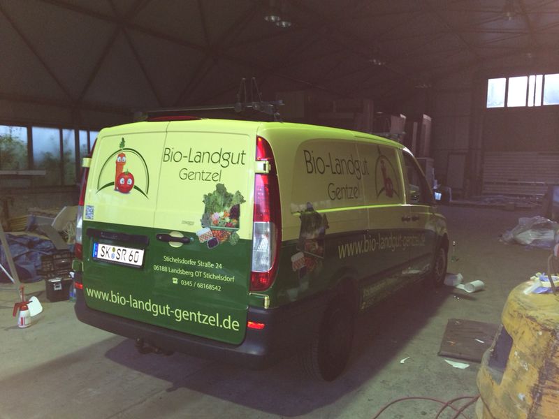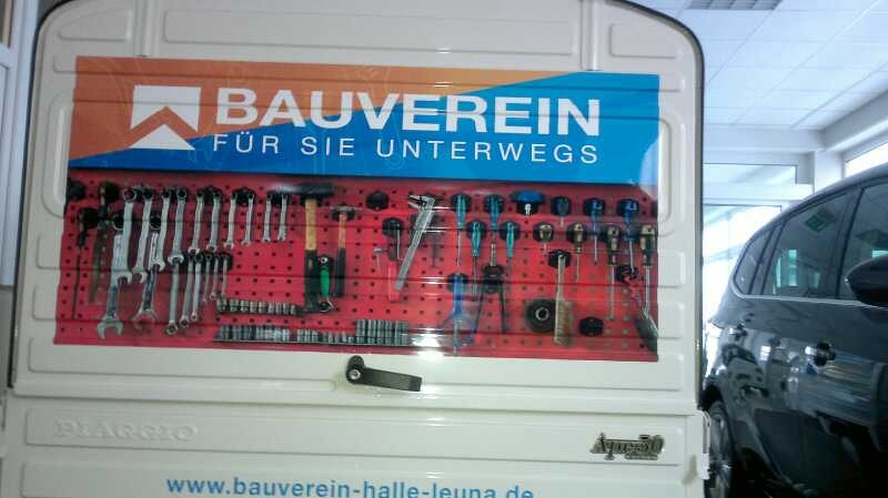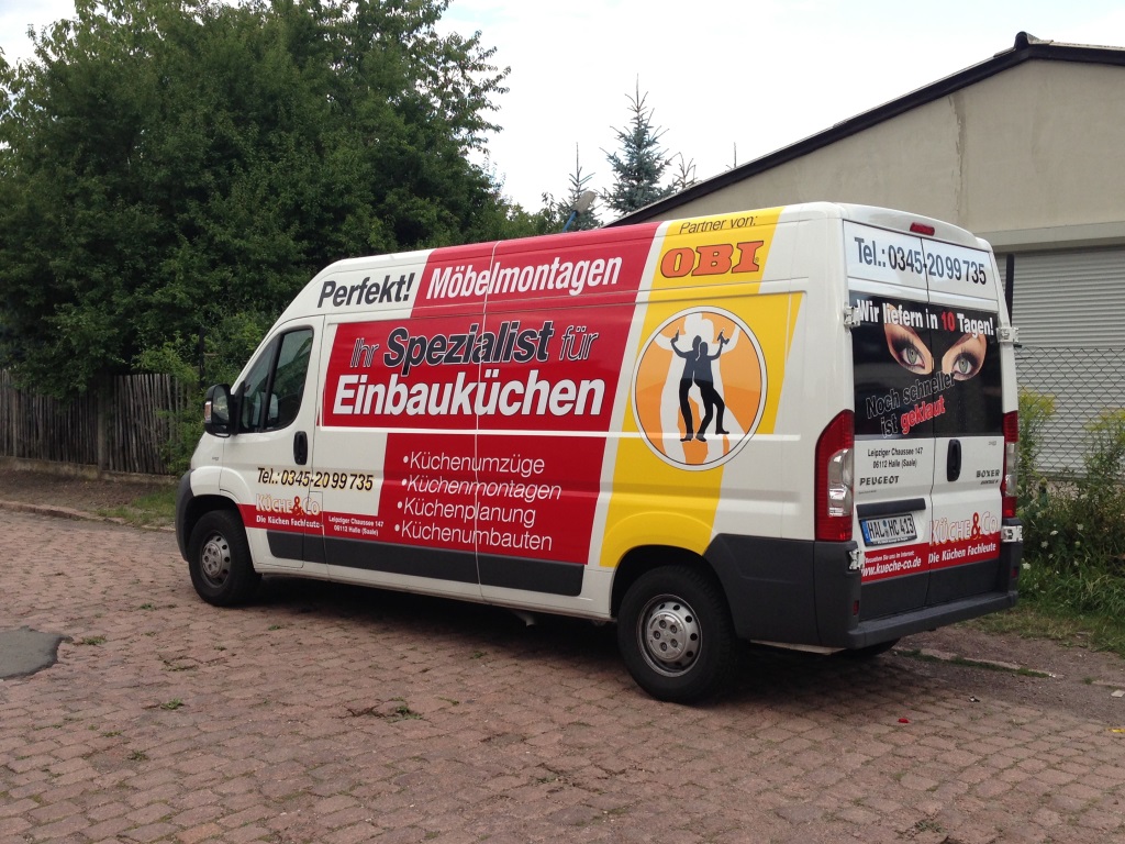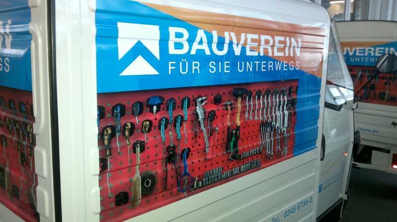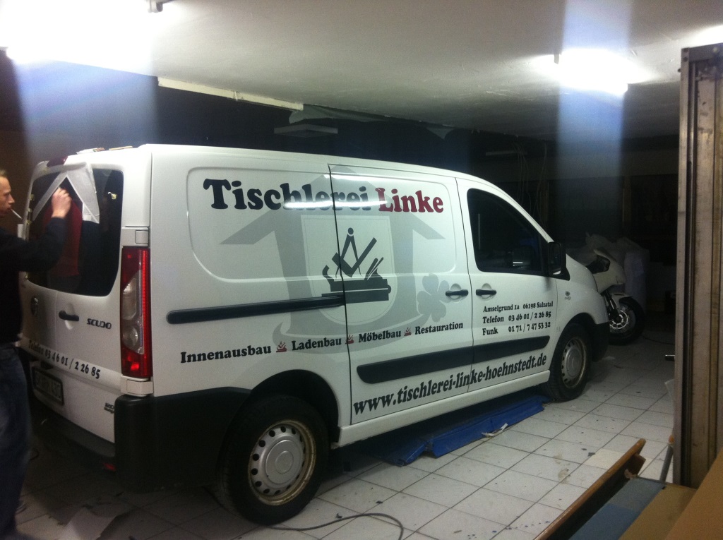 Fahrzeugbeschriftung für die Firma Holzpépe - Heck im Digitaldruck mit ORACAL3951RA foliert und Scheiben mit Windowsfolie beklebt.