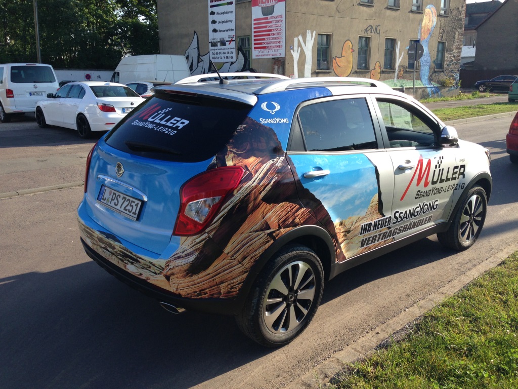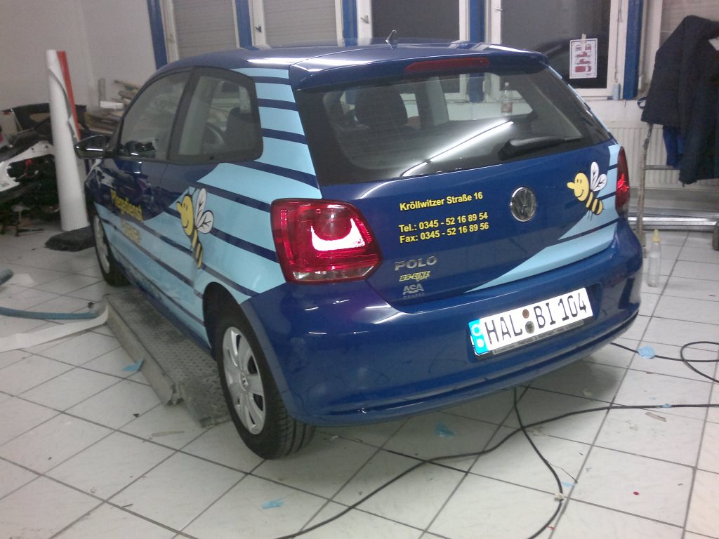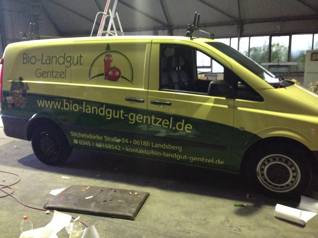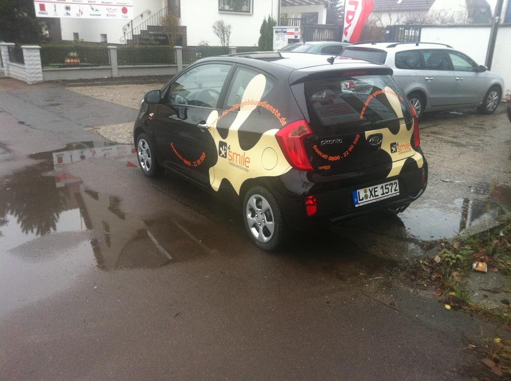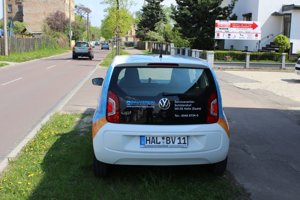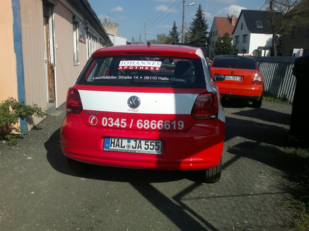 Fahrzeugbeschriftung für die Firma Holzpépe - Heck im Digitaldruck mit ORACAL3951RA foliert und Scheiben mit Windowsfolie beklebt.