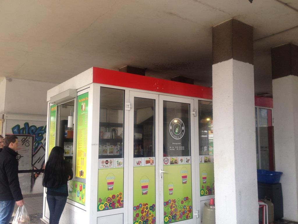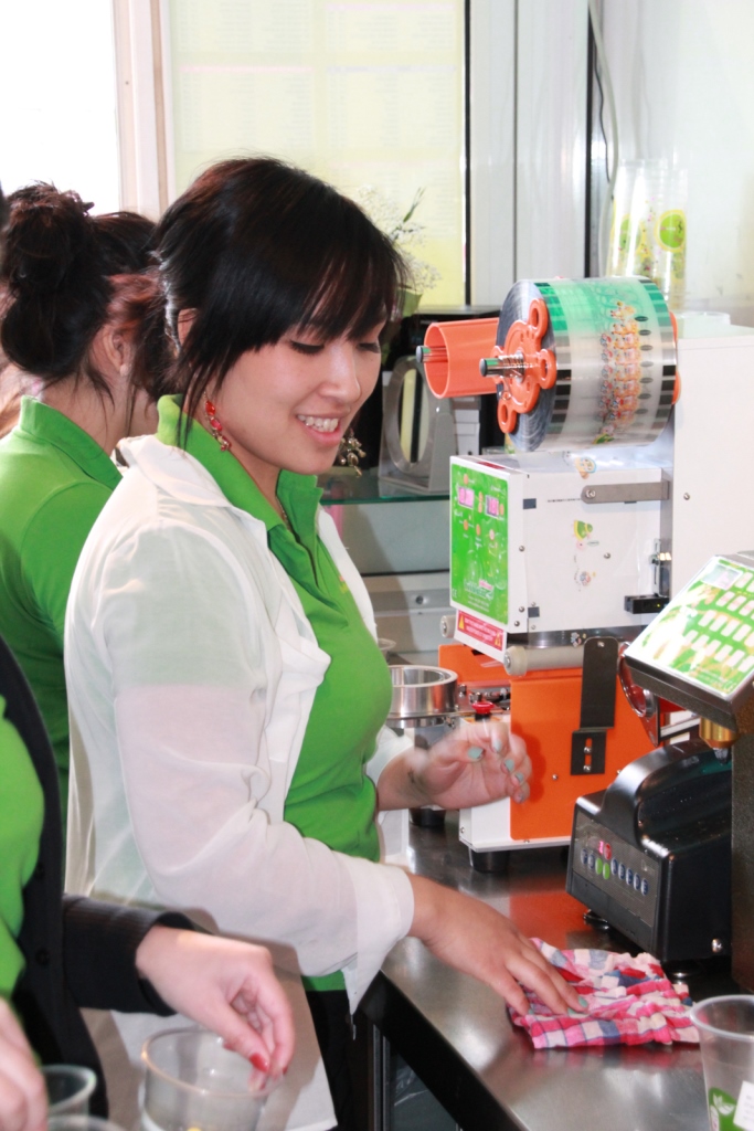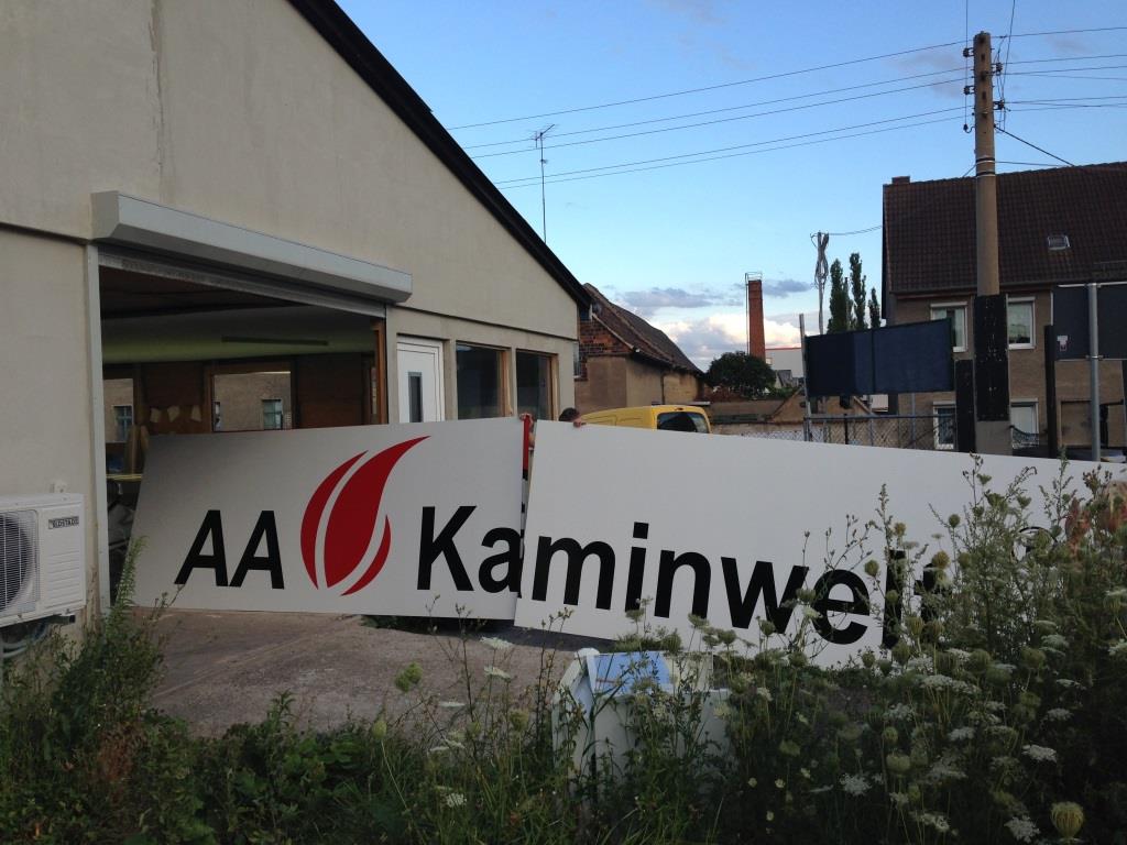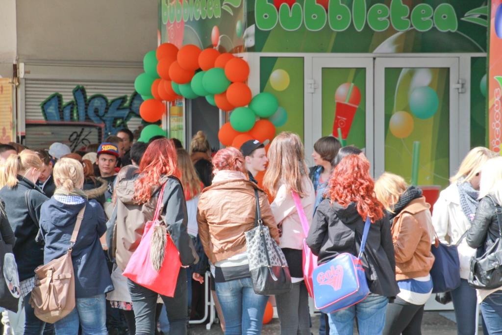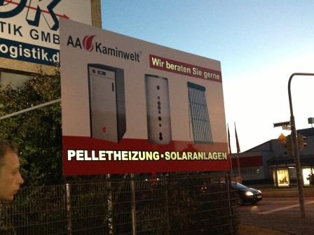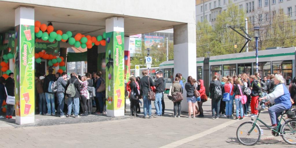 Montage von Werbeschildern für Bubble-Tea in Magdeburg