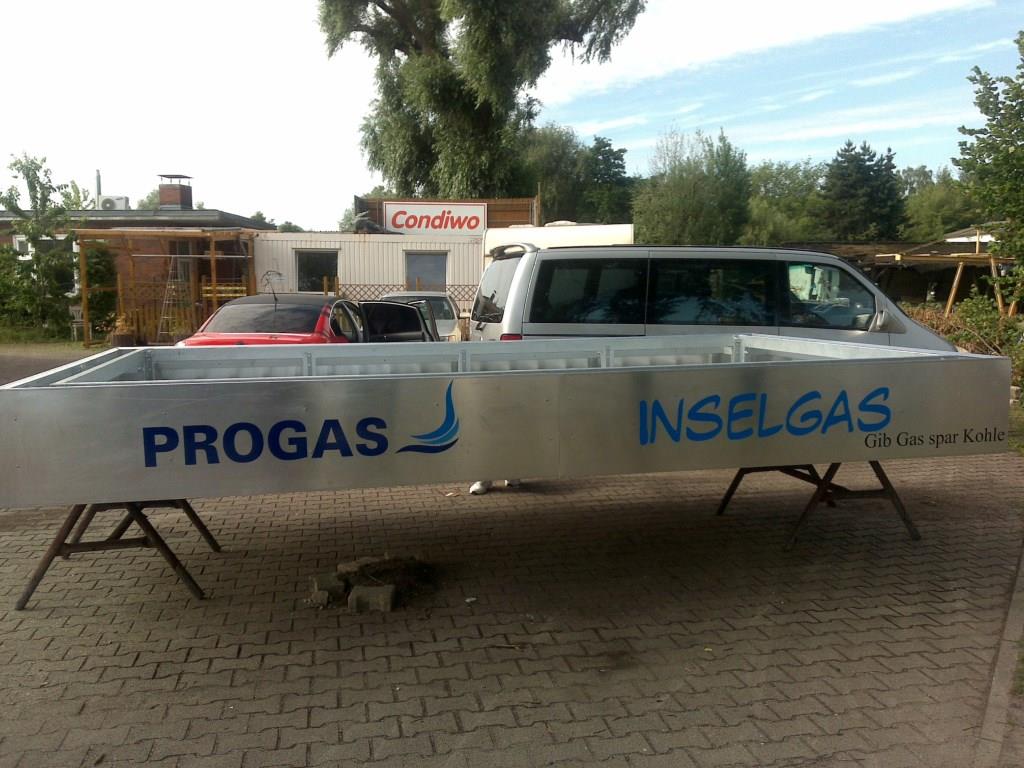 Fertigung eines Daches für eine Wassertankstelle aus einem Aluminiumgestell.